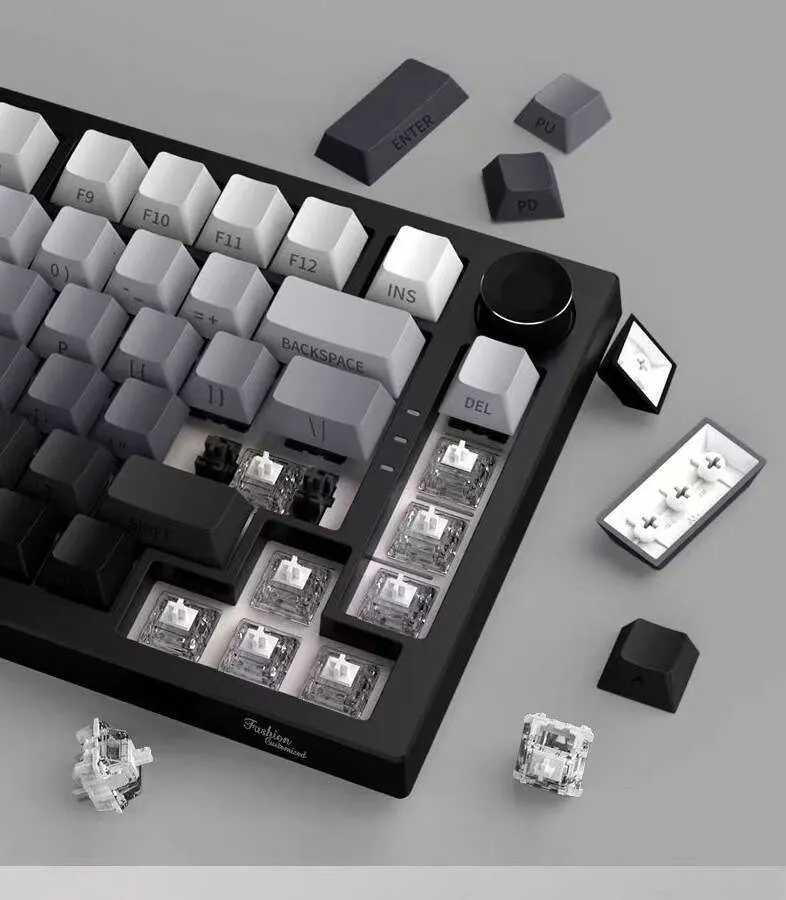 Three-Mode Mechanical Keyboard with Side-Engraved Keycaps Dual-Color Gradient Layout for Gaming or Office